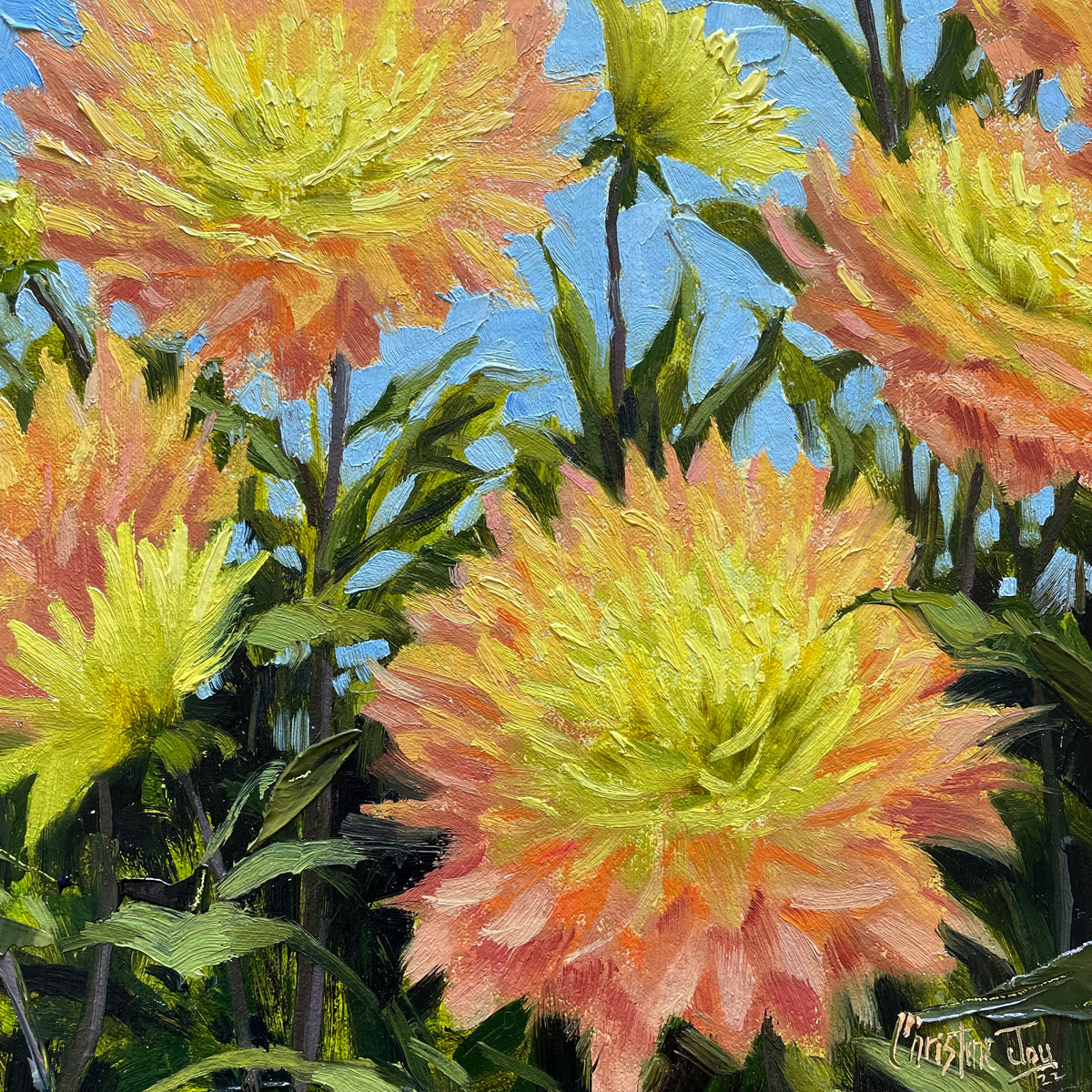 Much of learning to be an artist is learning how to see. This is something I have discovered in my desire to learn how to paint. Many of my paintings I have created from life - en plein air. This way of painting has many challenges - from the changing light or weather in a landscape, to the peculiar nature of flowers (they keep moving to face the light, even after they are picked!) These challenges are what make painting en plein air exciting to me.