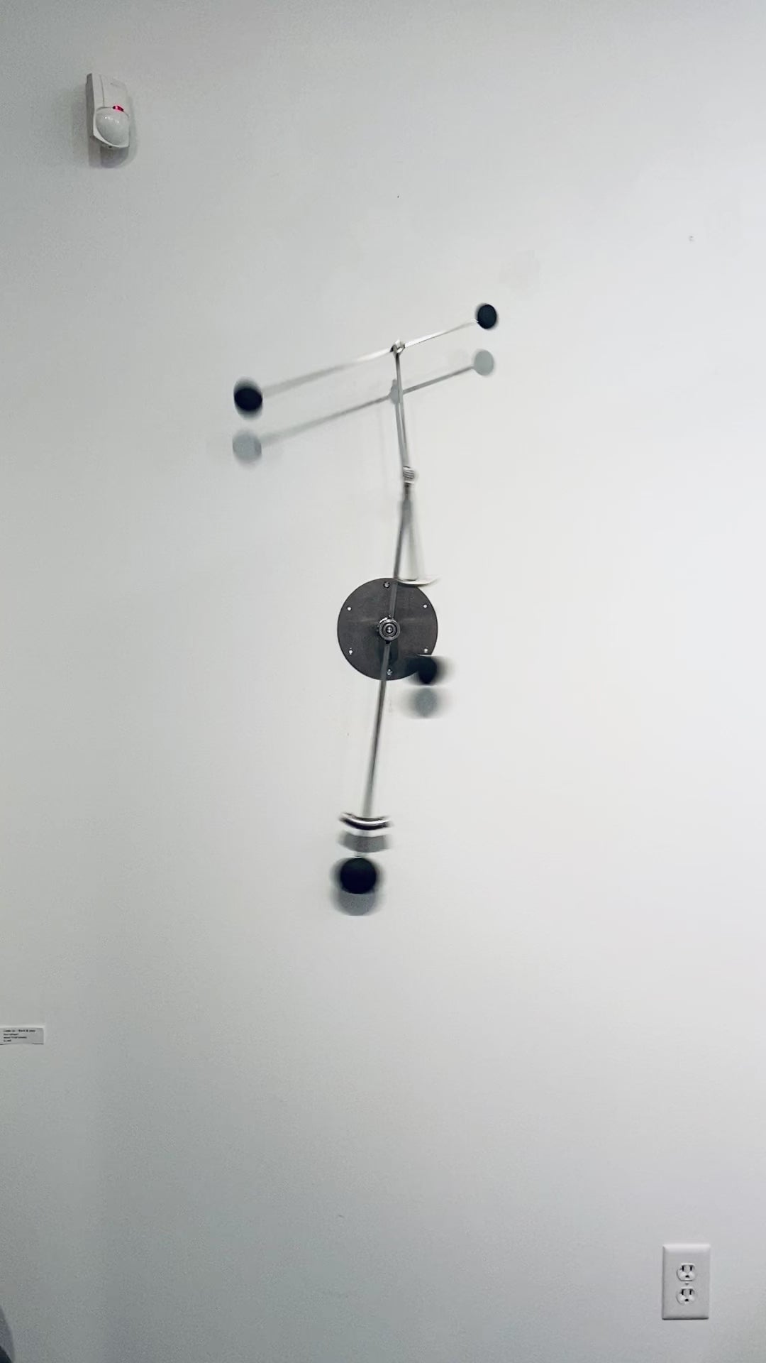 As an observer interacts with the sculpture they are presented with an opportunity for experimentation. Starting the motion with different initial conditions, angle and velocity of the components, results in different motion patterns. Many sculptures have one or more physical adjustments that enable the observer to alter the frequency of the moving elements and thus change the rhythmic pattern. At marked adjustments the different moving parts have integer frequency ratios that are prominent in musical scales.