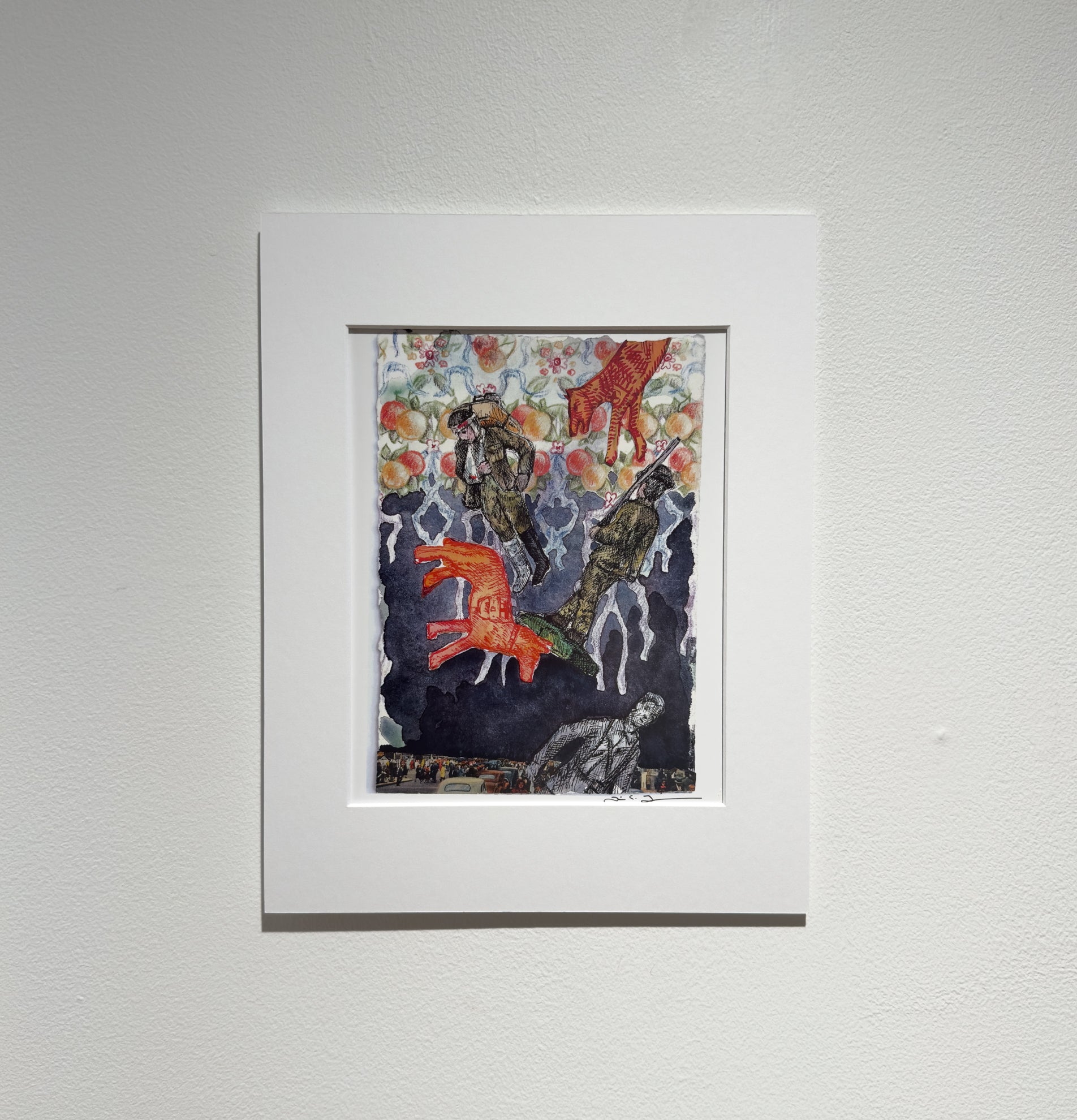 11" x 14" Micron pen, collage, colored pencil, gouache & watercolor on paper.