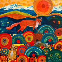 Kathy lives on a cattle and hay ranch just outside of Sisters, Oregon on the eastern slopes of the Cascade Mountains.Her watercolors are rich with color and pattern. Kathy’s work is collected throughout the Pacific Northwest and has been featured on clothing by Columbia Sportswear, been translated into a full line of quilting fabrics and interpreted in glass. She has work in several permanent collections throughout the state. In 2008 Kathy was selected to create the Oregon State Ornament for the White House Christmas Tree and in 2009 was a featured artist on Oregon Art Beat. Her image “Coming Home” was featured as the cover of the 2010 OPB calendar.