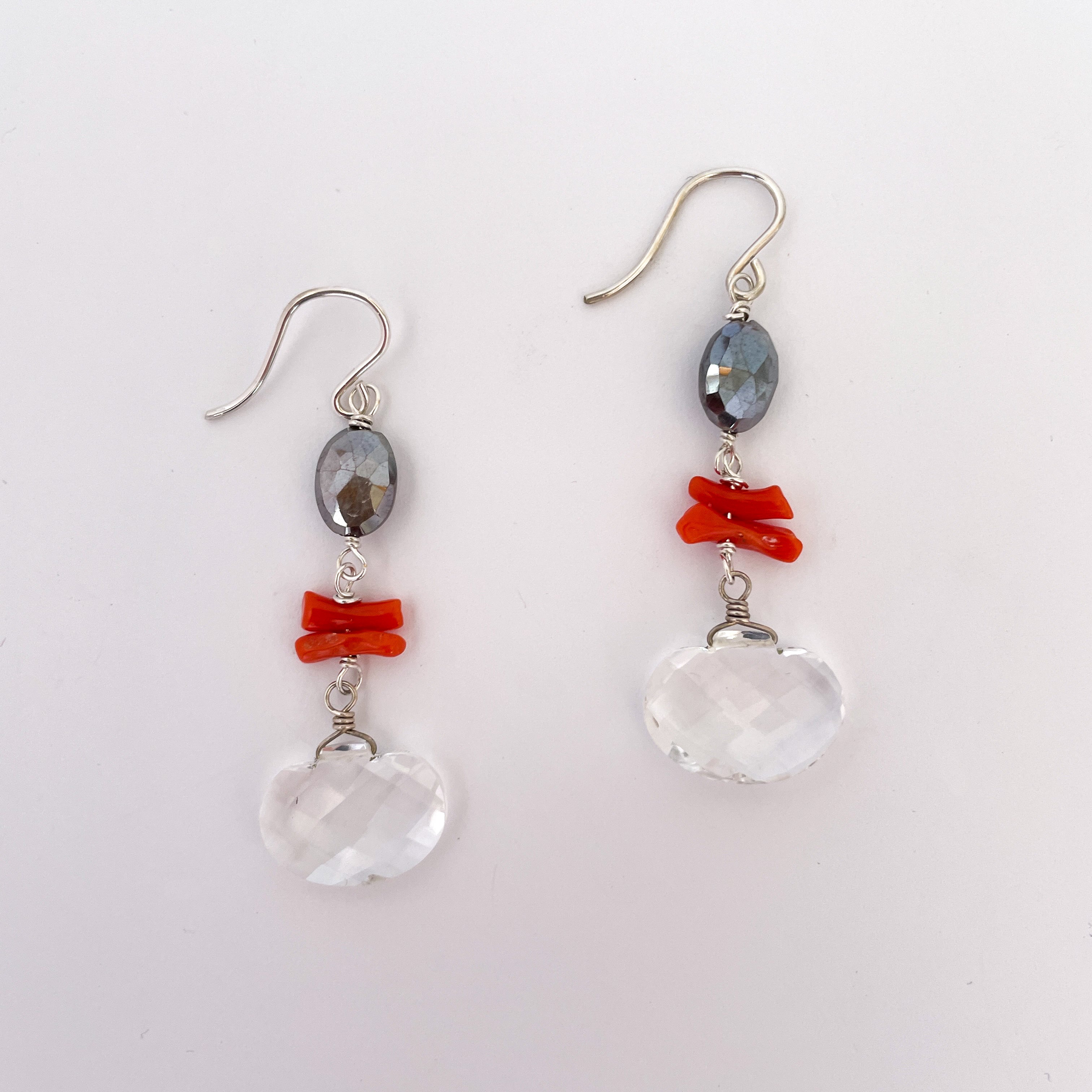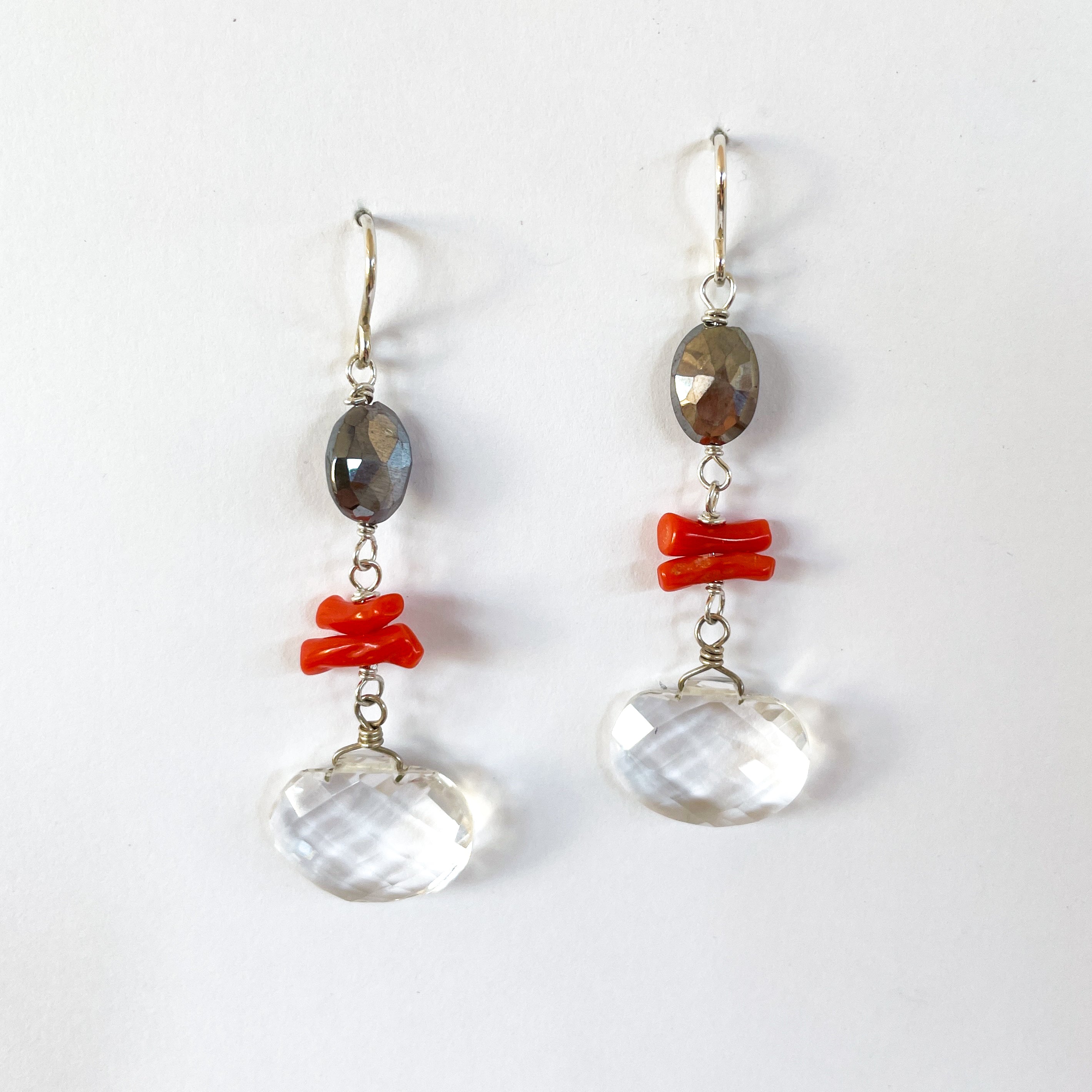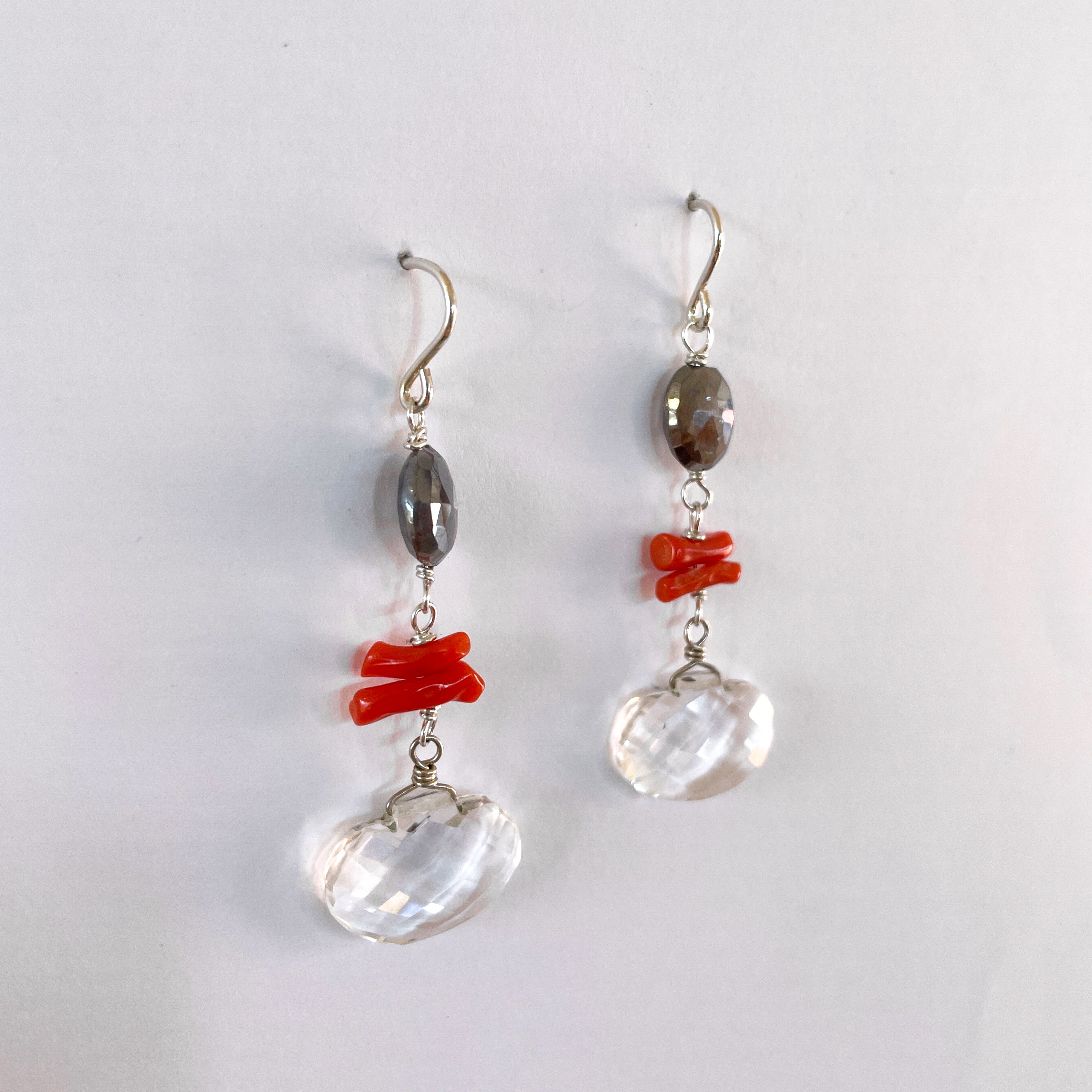 Faceted rock quartz, vintage branch coral, and mystic grey moonstone on sterling silver
