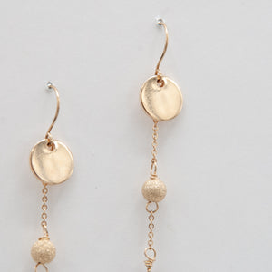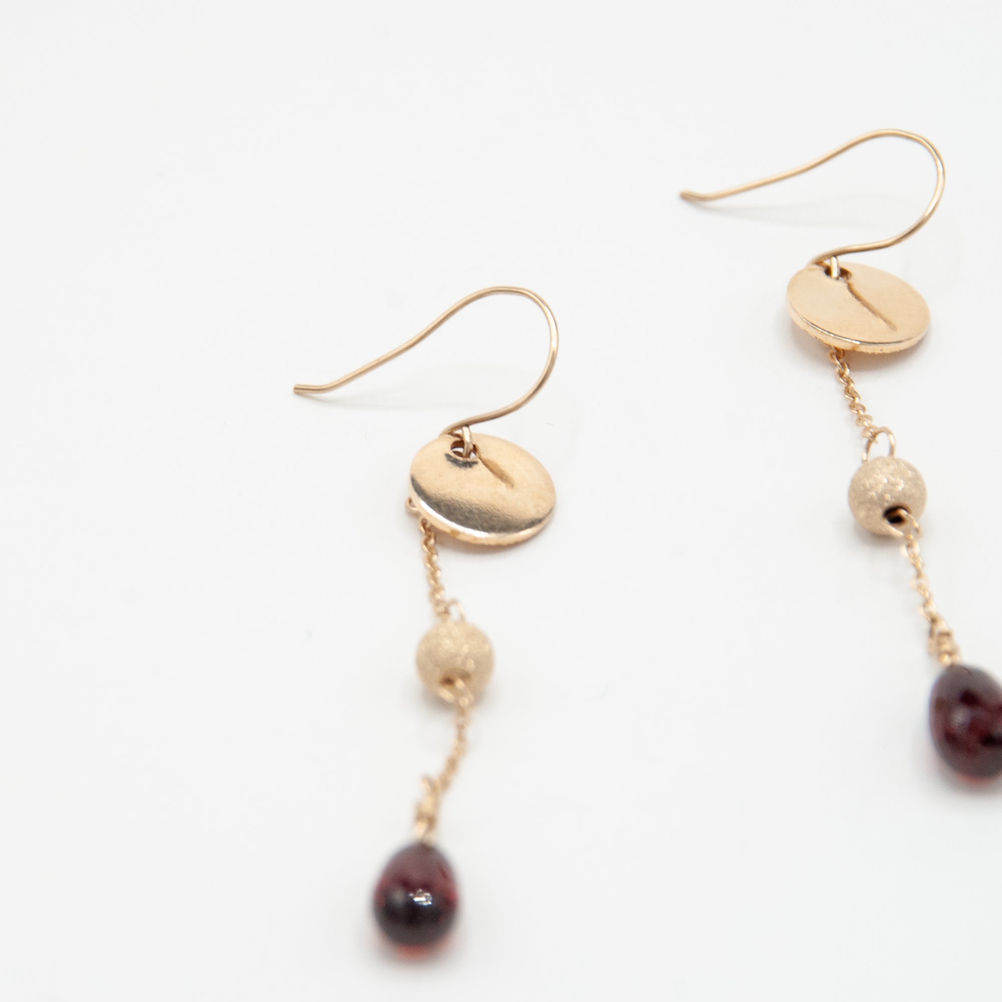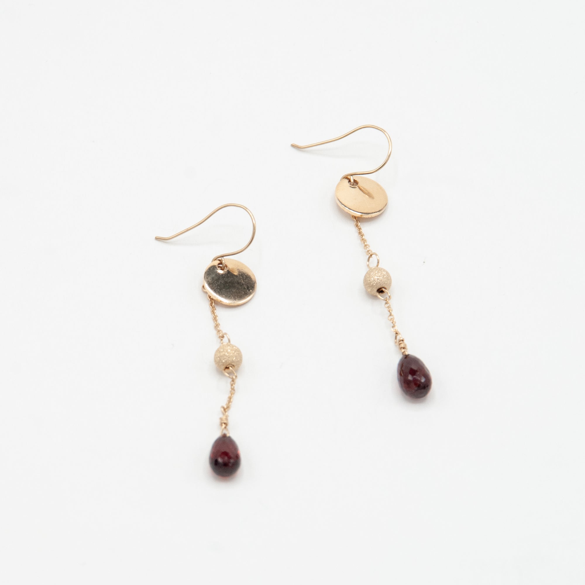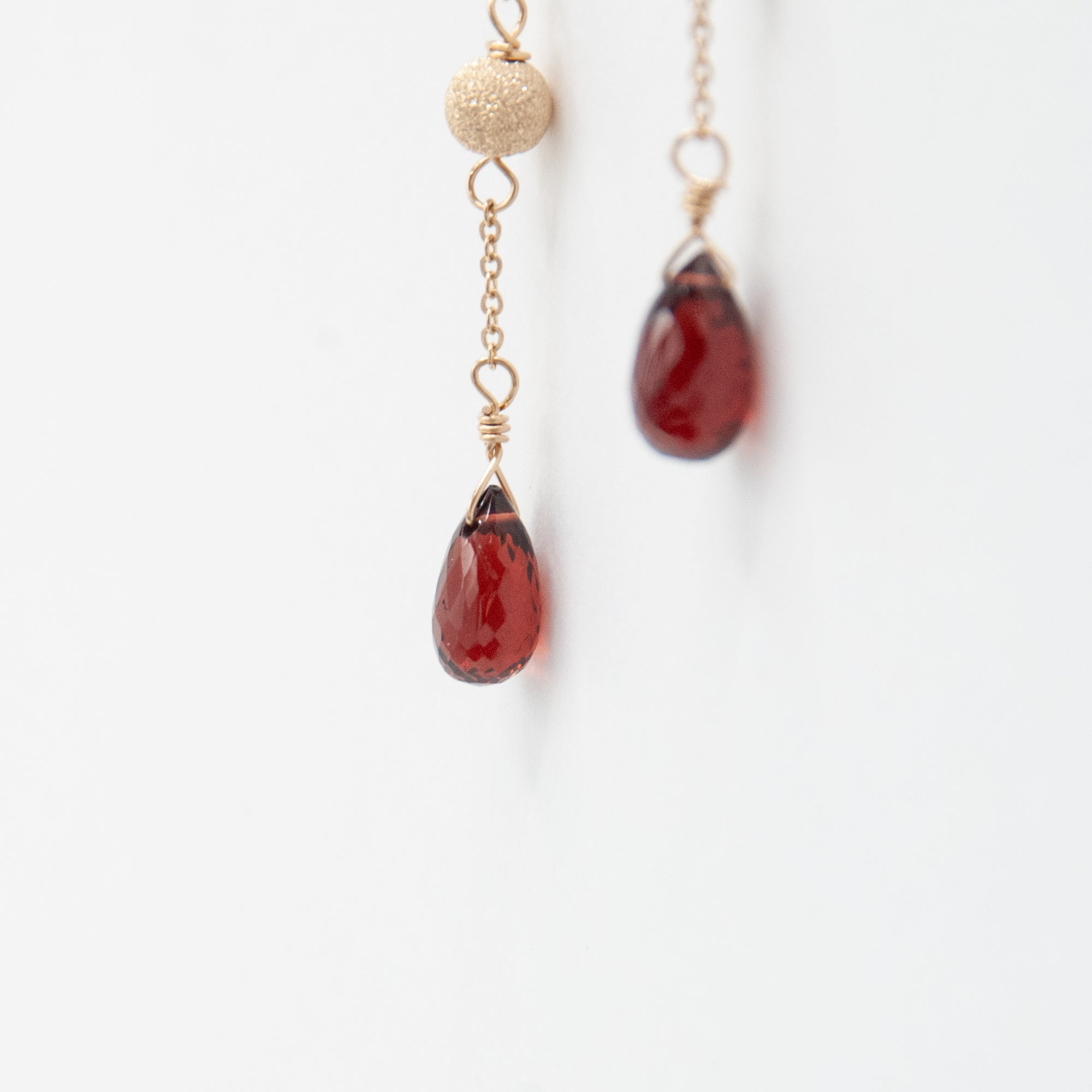 Faceted garnet chain drops with gold filled stardust beads and discs.