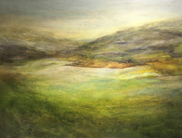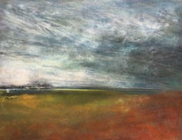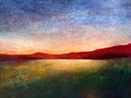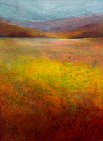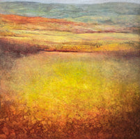 She is known for her use of color and skill at creating rich textural surfaces. Using a variety of non-traditional painting tools and experimenting with paint viscosities is key to her technique. The ‘happy accidents’ along the way light her up and keep her coming back to the studio.