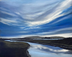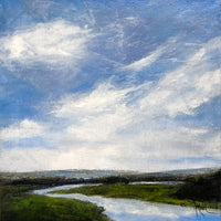 Mandy Main paints luminous oil paintings of the Western landscape, informed by nature and capturing a personal sense of place rather than an exact representation. Mandy focuses on panoramic vistas and receding perspectives with a sense of depth and movement, and she pushes these elements to draw the viewer into the painting. The fleeting nature of light and clouds become dramatic subjects in her work. Mandy is an art historian and her passion is 19th Century American landscape painting, especially the Luminists, whose works remain an undying source of inspiration. Mandy alternates between representation and abstraction, using traditional forms and techniques but allowing them to be overshadowed by her own personal vision. The work is dreamy and atmospheric, a view into traditional art history with a modern sensibility. The paintings are rendered in oils on canvas or wood panels using a subdued palette of warm colors, applied in layers of glazes to achieve a luminous effect.