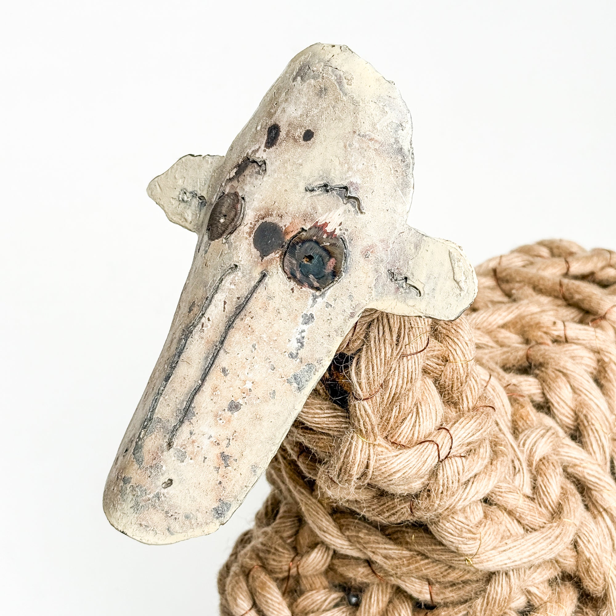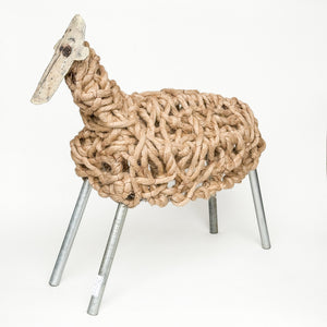 Fur is made with Manila Rope, body + face is made out of reclaimed metal.