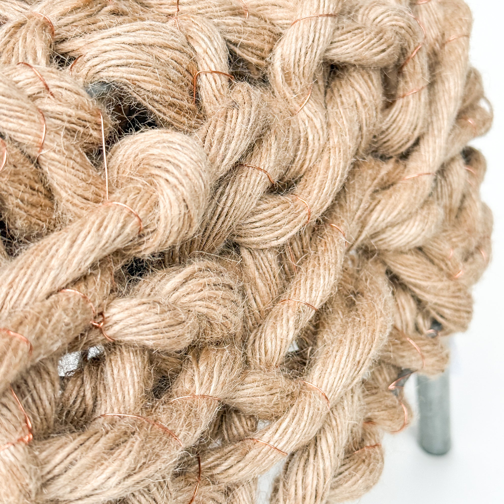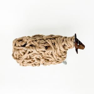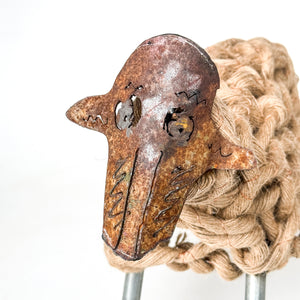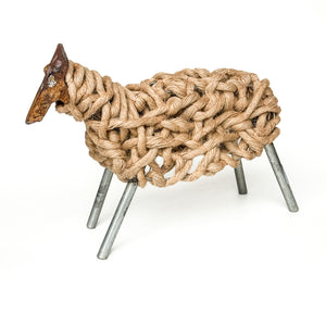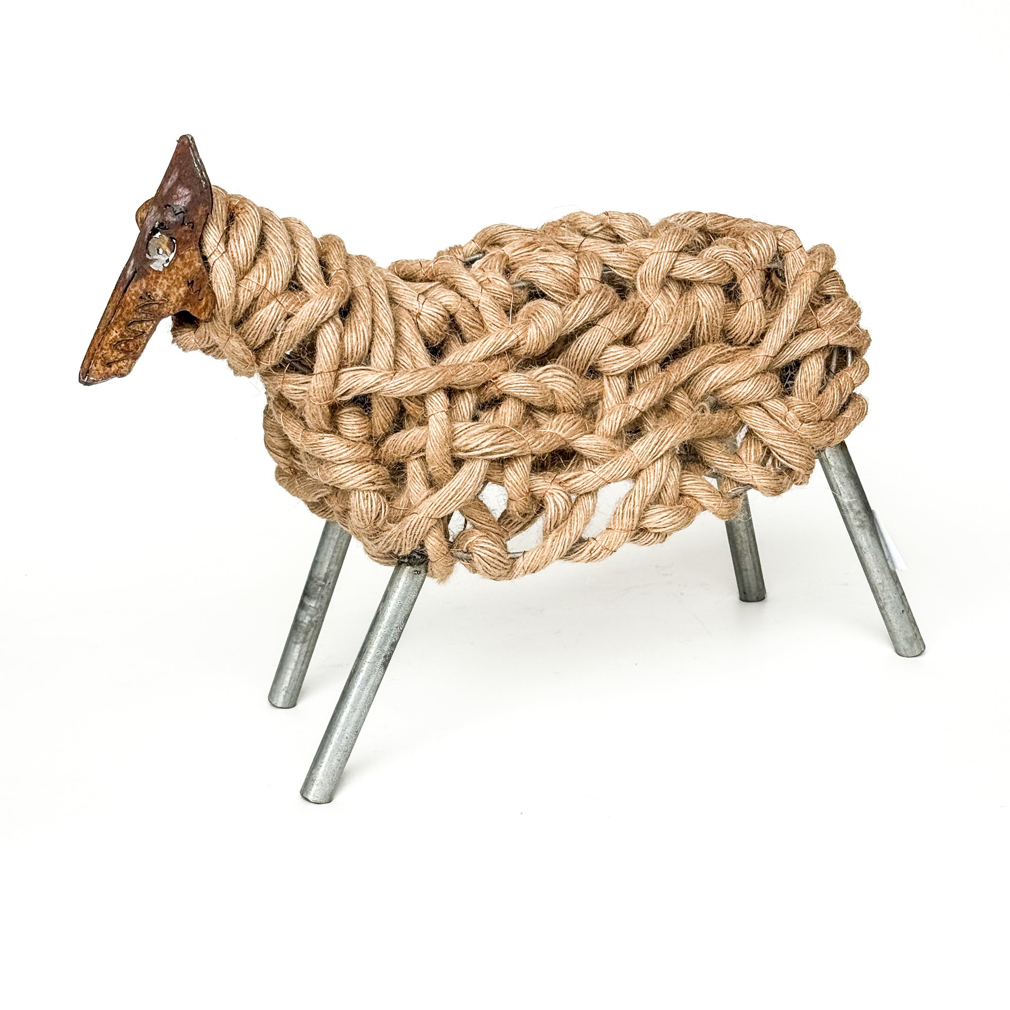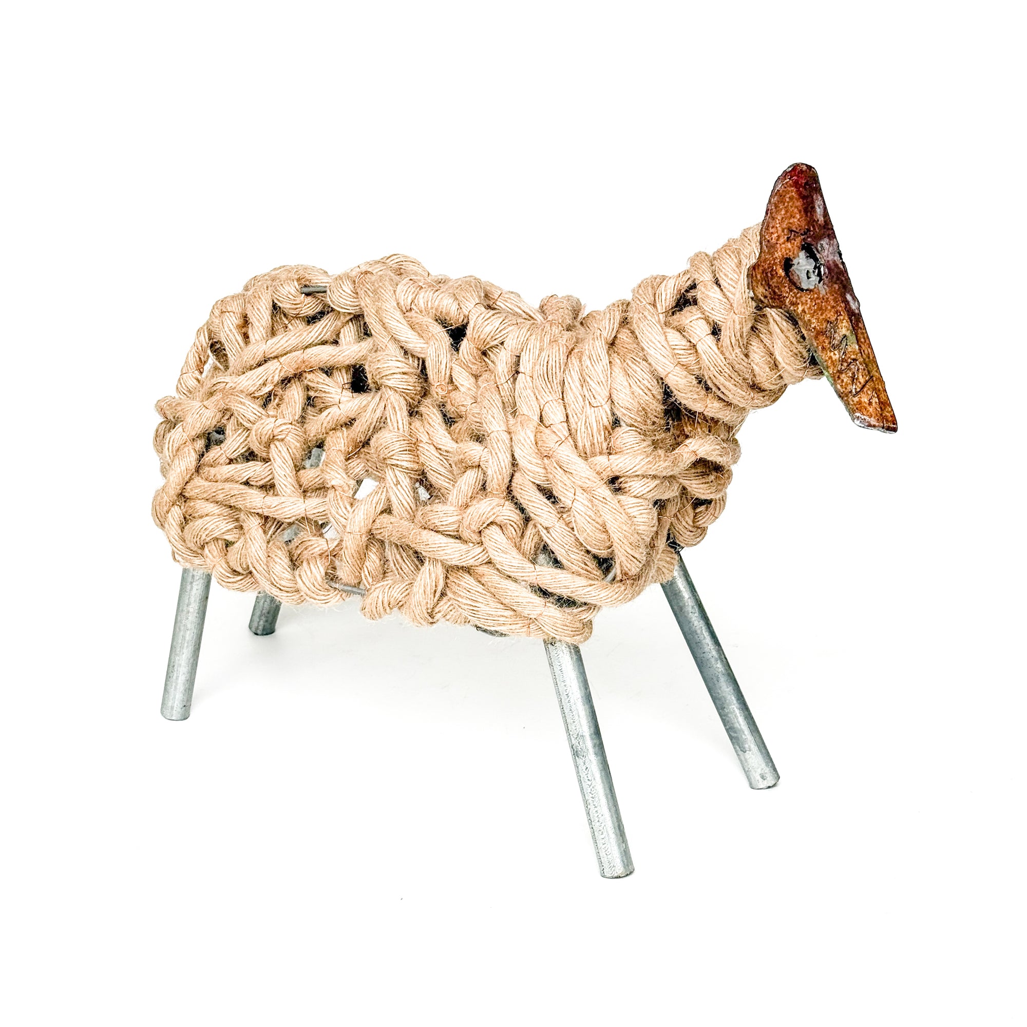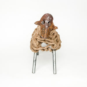 Fur is made out of Manila Rope, body + face is made from reclaimed metal.