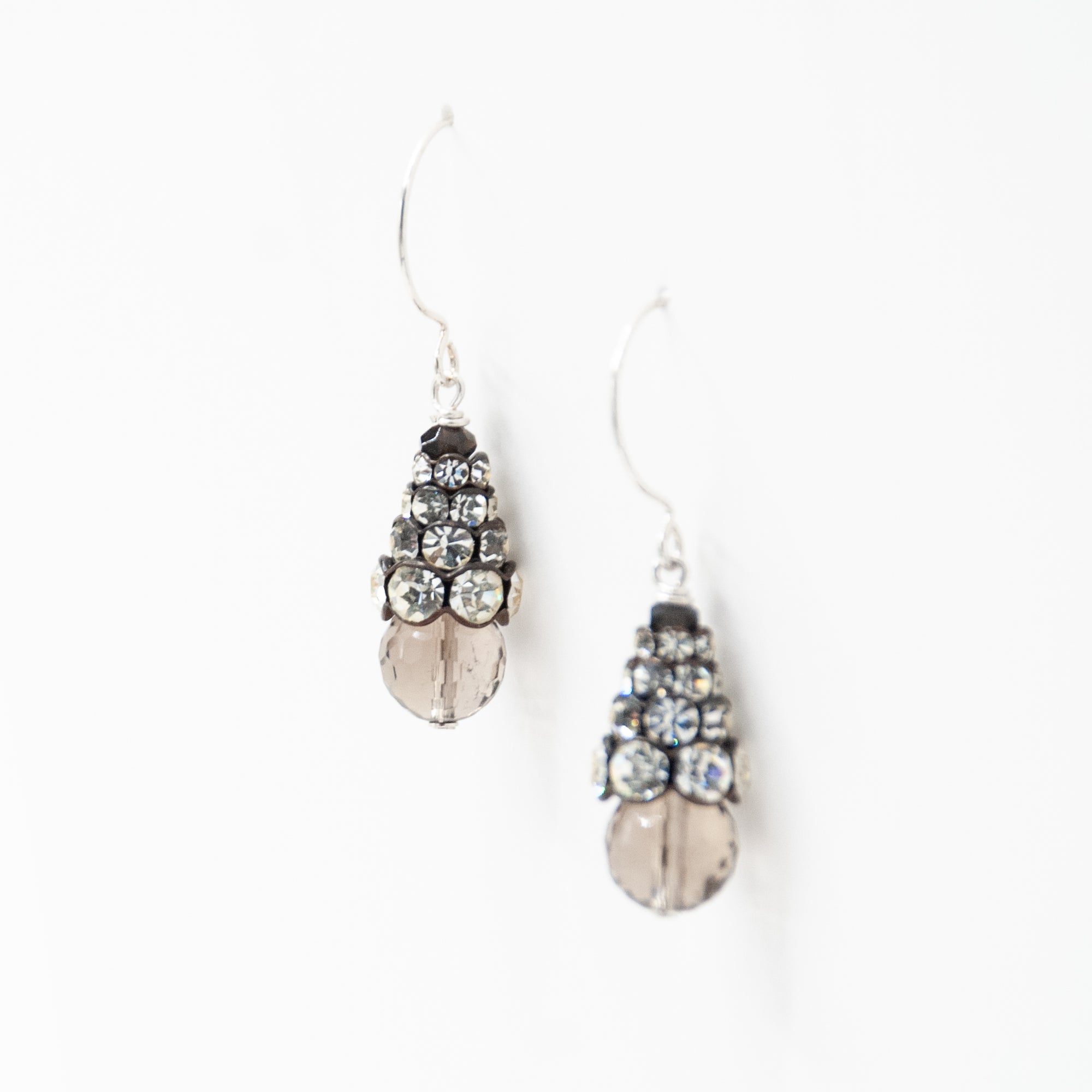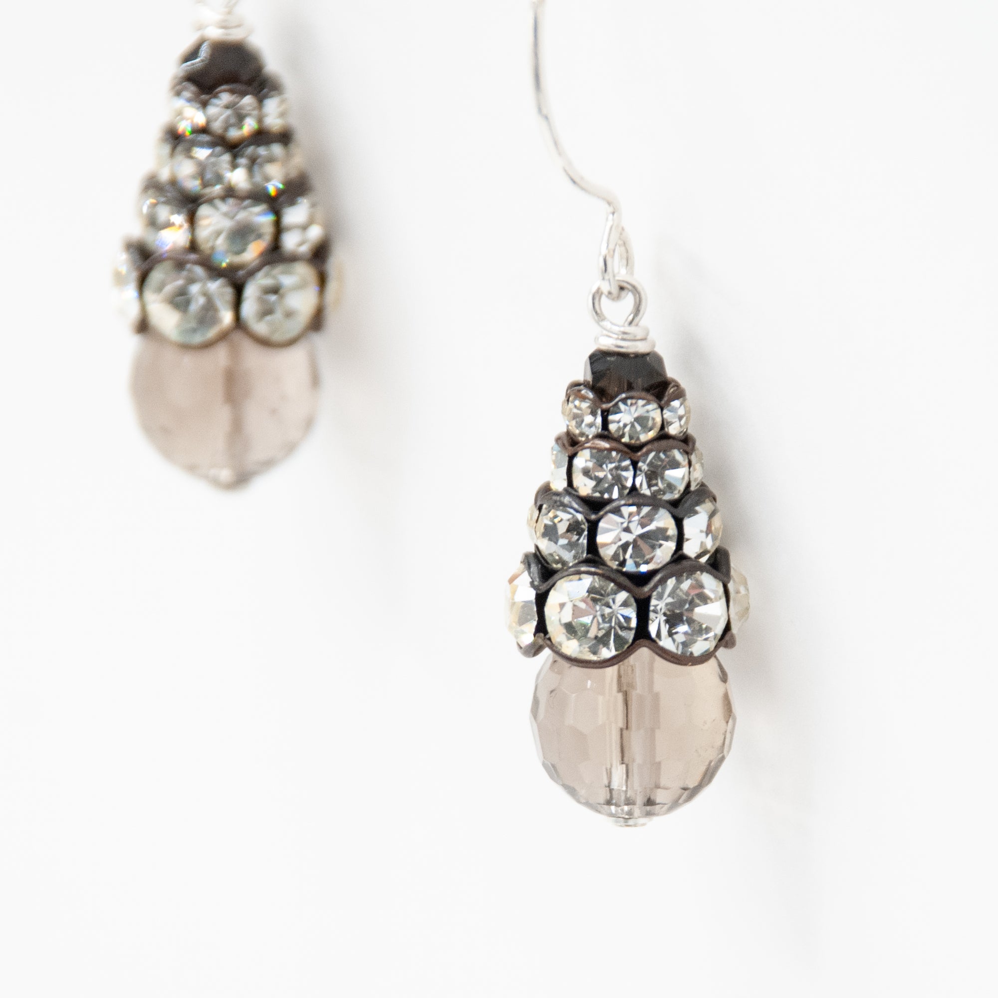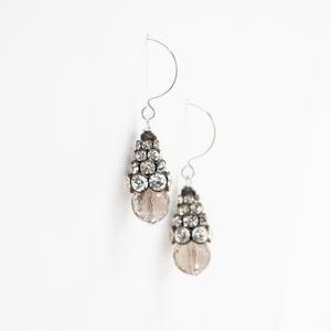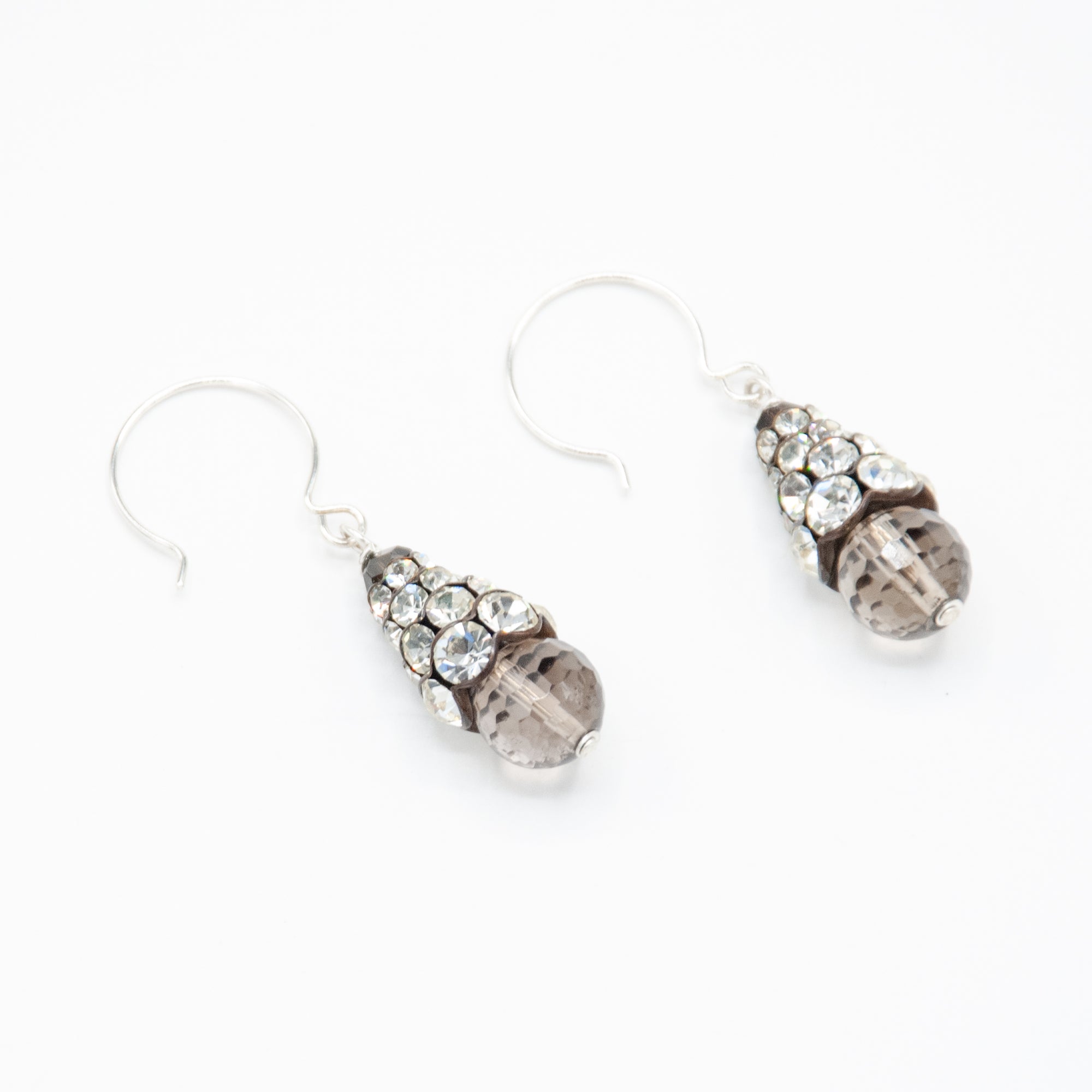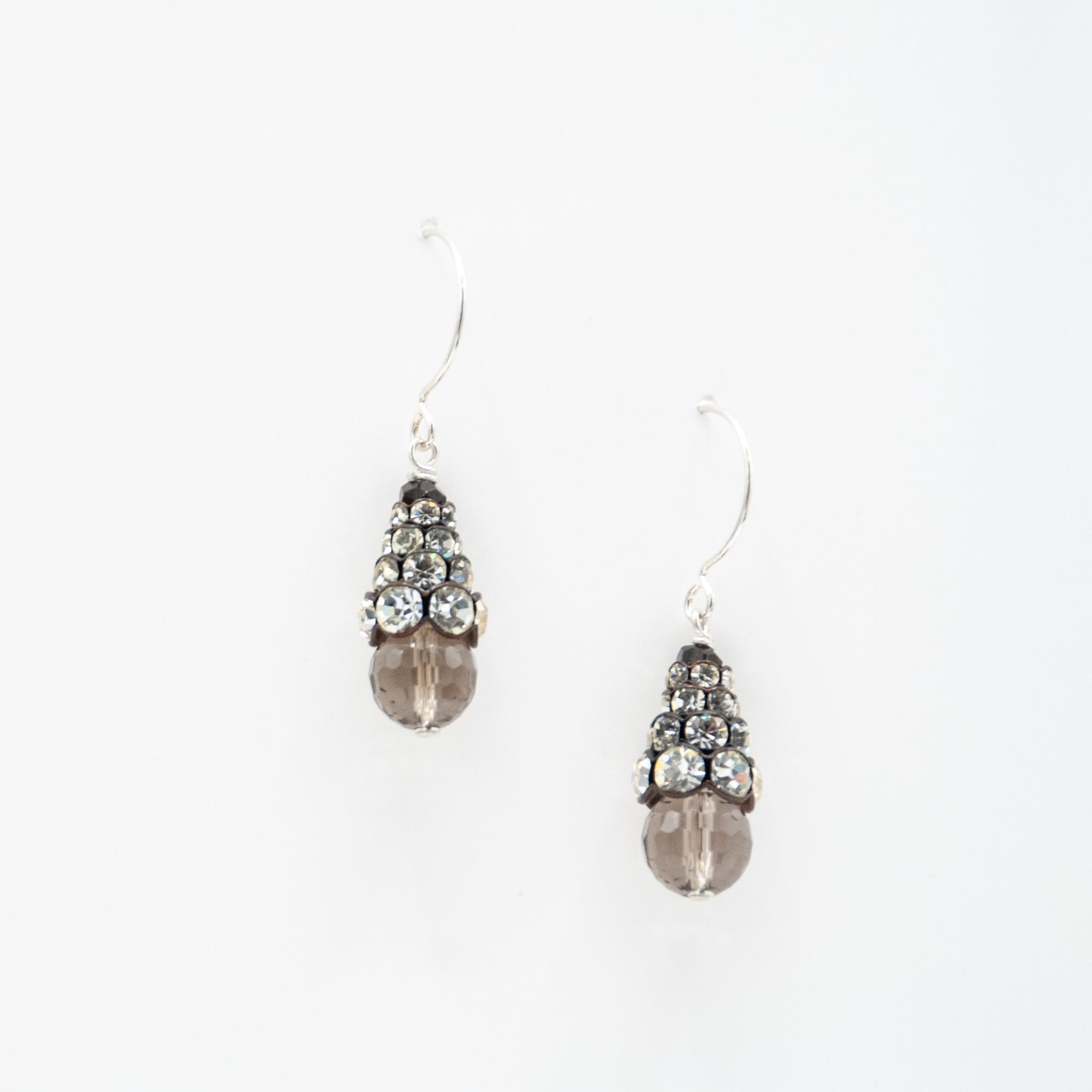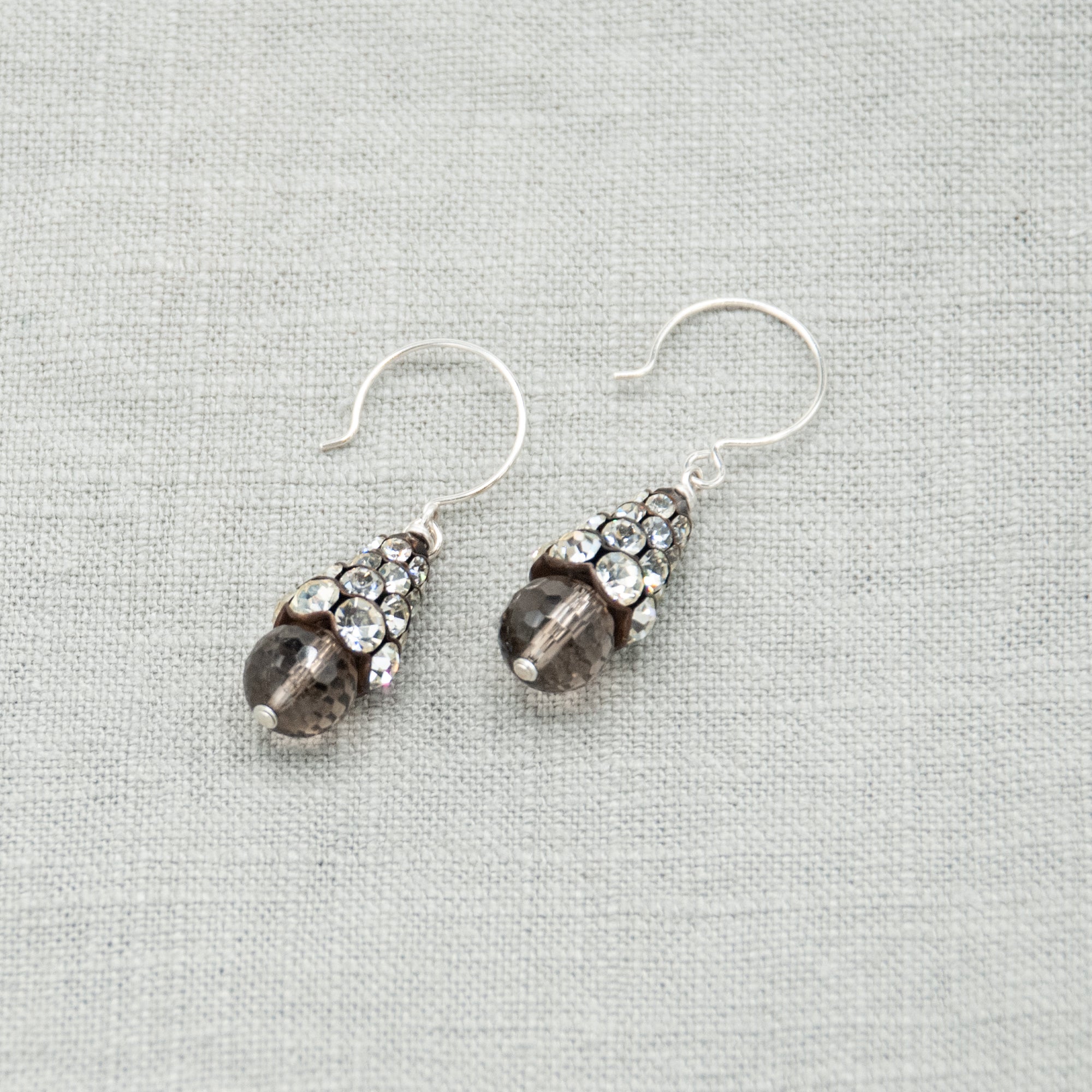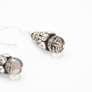 Vintage rhinestones with faceted smoky quart on round sterling ear wires