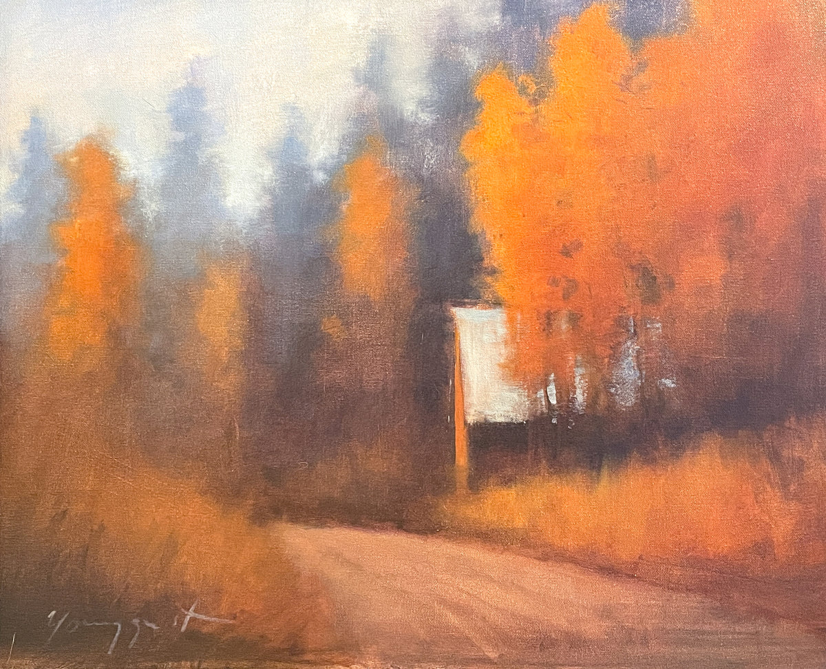 Romona Youngquist was born in 1960 in Yuba City, California, but grew up in Eastern Oklahoma. Romona essentially started out in life as a child of nature, spending her time exploring the woods with her dog and collecting critters. While exploring, she also studied the design and color of nature. Romona recalls many times standing in a field just staring in fascination at the values of the deciduous trees against a dark Oklahoma sky before a storm, and then rushing home to draw what she had seen. Technically self-taught, Romona thinks of nature as her real teacher. In 1994 she was awarded a grant from the Alaska State Council for the Arts to study with Oregon landscape painter Michael Gibbons and in the late 1990’s she studied with Michael Workman, a leading landscape painter from Utah. Romona has taken their valuable lessons and strengthened her own individual style. She also admires the work of Russell Chatham, Emil Carlson, and Wolfe Kahn, especially for their commitment to the beauty of simplicity and atmosphere. Her admiration of these painters has translated to numerous exhibitions and honors, awards and merits throughout the United States.