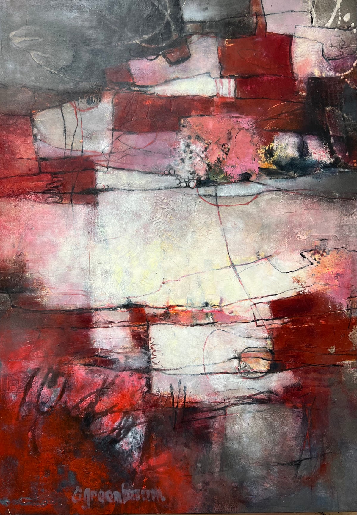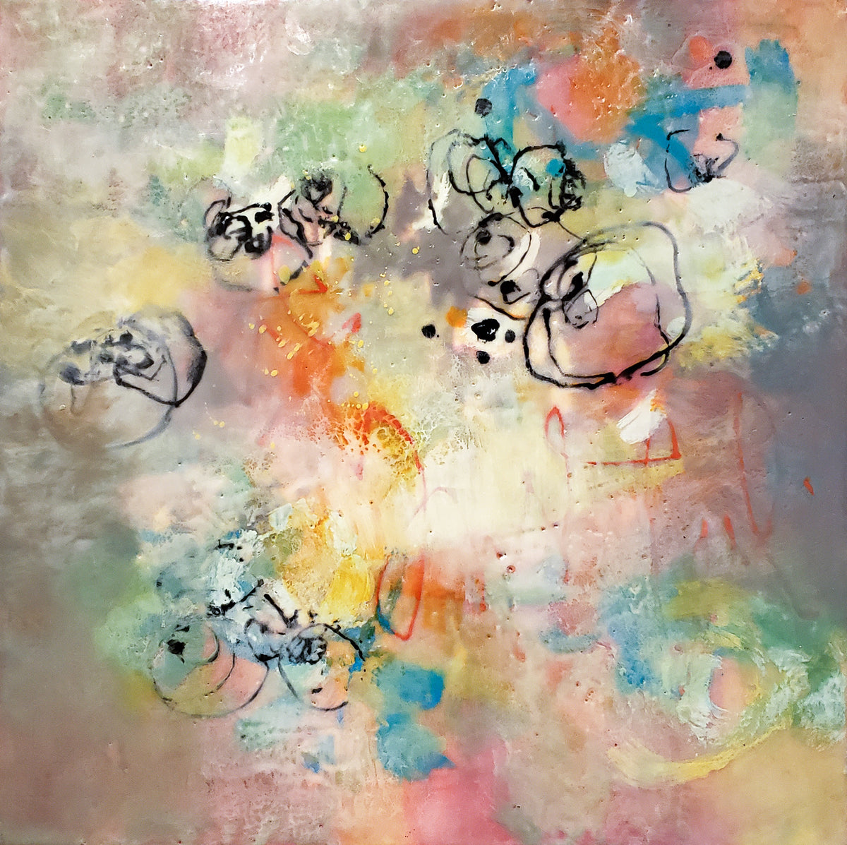 “My goal with my art is to have a good time, learn something, experiment, problem solve, make lemonade from lemons, and hopefully create something that brings myself and maybe others a response from what I have expressed. I want the viewer to look at the painting for a bit and see into the surface to the layers and history below. If I can bring the viewer into the world I have created, I feel I have accomplished much of my goal as an expressive, intuitive painter.”