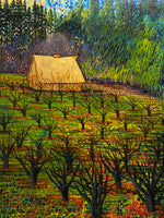 I brush my paint into light circles, leading you through my work as I see the path form. Striated line and layering of paint creates depth. Light used as an element, enhances the season, time and space of my compositions. I want the viewer to see my thoughts and then, interpret the painting with their own feelings. I hope my work evokes emotion and connection to your inner child. It is through the brush, I remain.