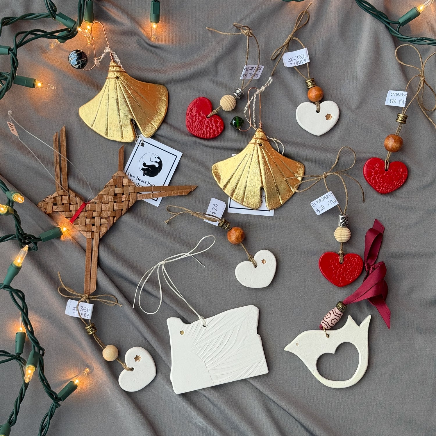 These original ornaments are each hand made by an Oregon artist. We have a variety of artists who enjoy crafting these cheery decorations every year. Add some warmth to your holiday decor with these charming and elegant ornaments.