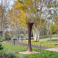 Bold and contemporary, steel sculptures bring strength and clarity to sculptural form. Steel offers artists a modern medium to explore balance, tension, and space. Each piece adds architectural impact and refined edge to its surroundings.