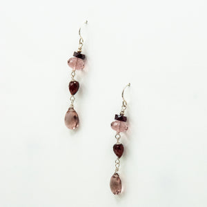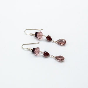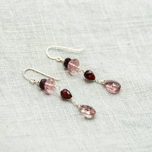 Garnets and pink kunzite quartz on sterling silver ear wires