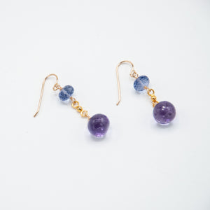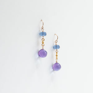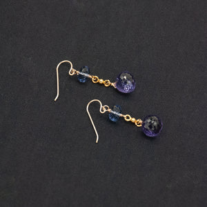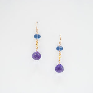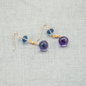 A+ faceted amethyst briolette with iolite and gold vermeil link on 14k gold fill.