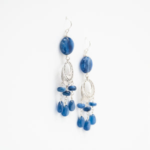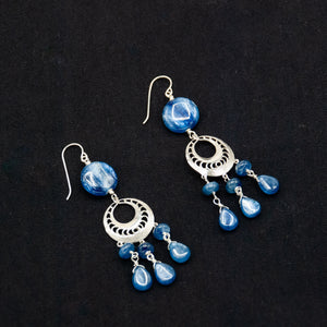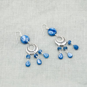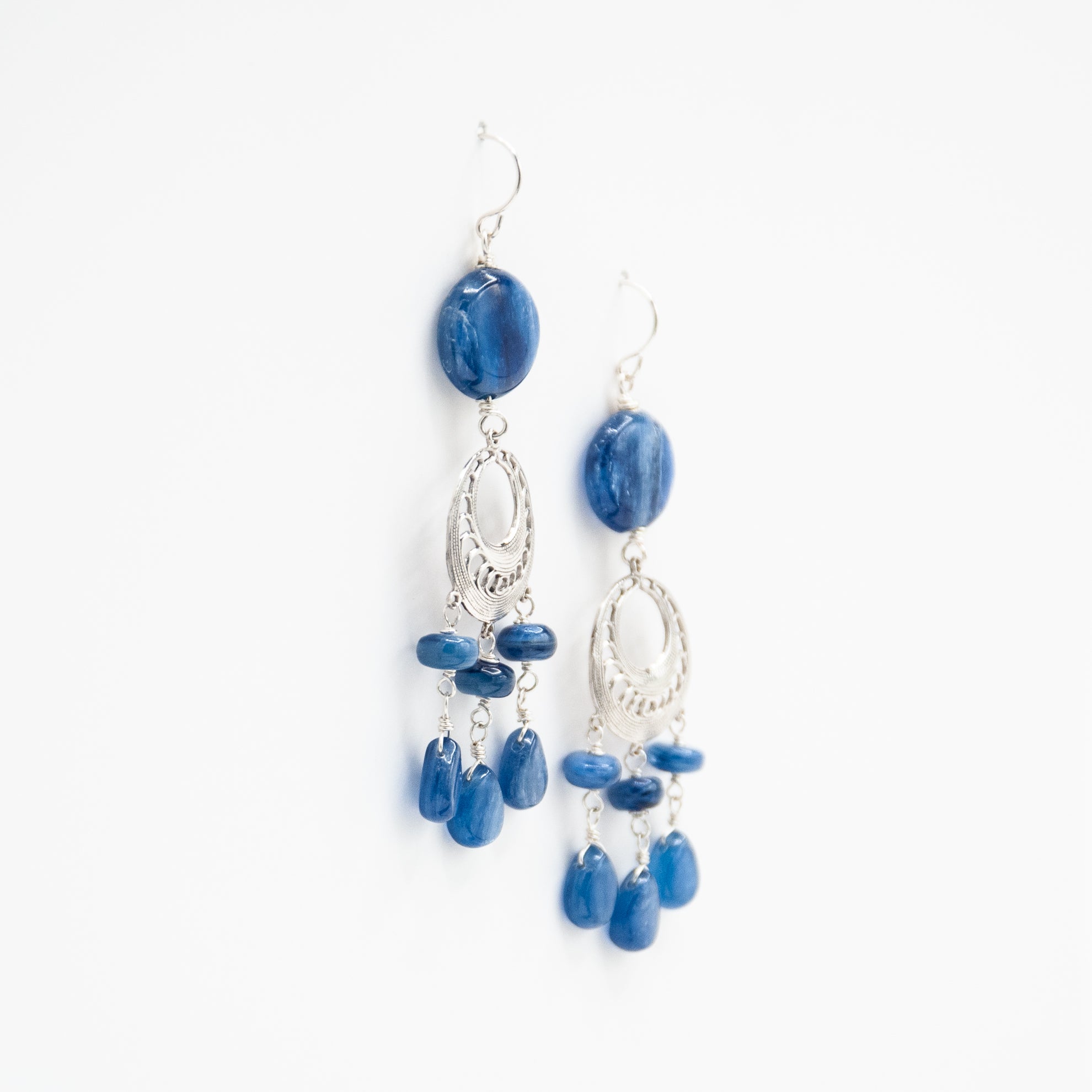 Blue kyanite showing it's chatoyant internal structure & luster on sterling silver.