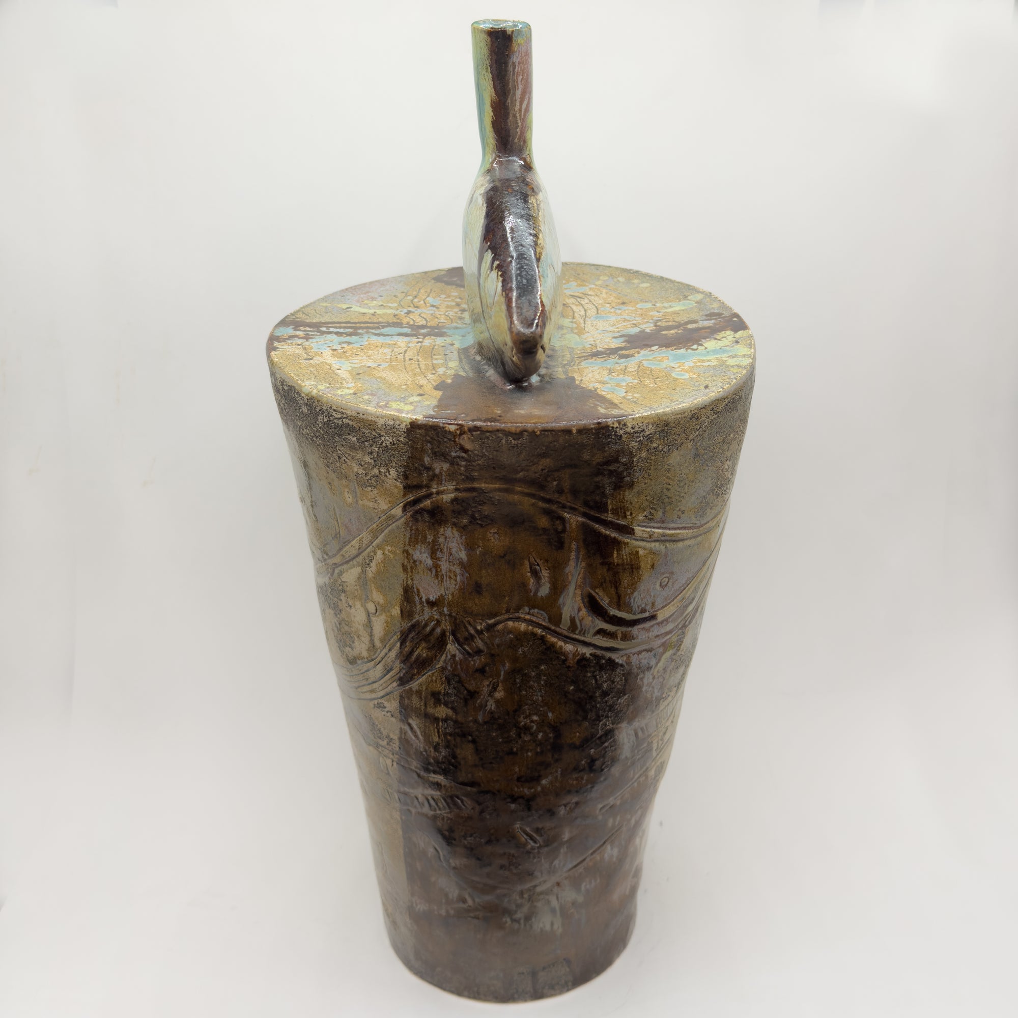 Crafted by a local artist, this beautiful stoneware sculpture adds an artistic touch to any space. Each piece is unique and showcases the mastery of the maker. Elevate your decor with this one-of-a-kind original artwork.