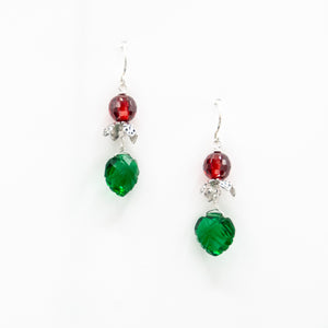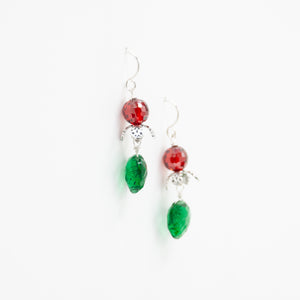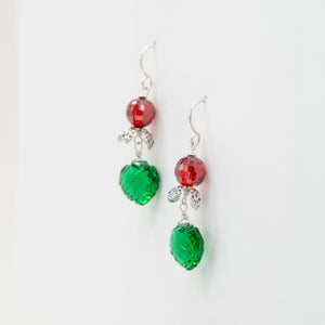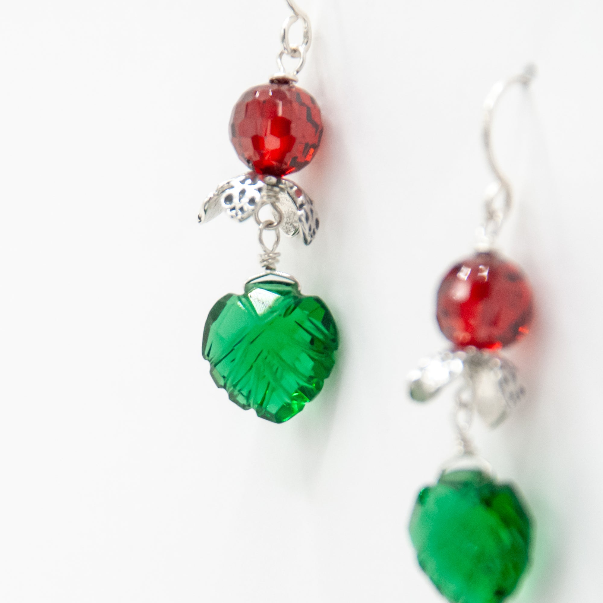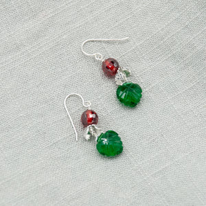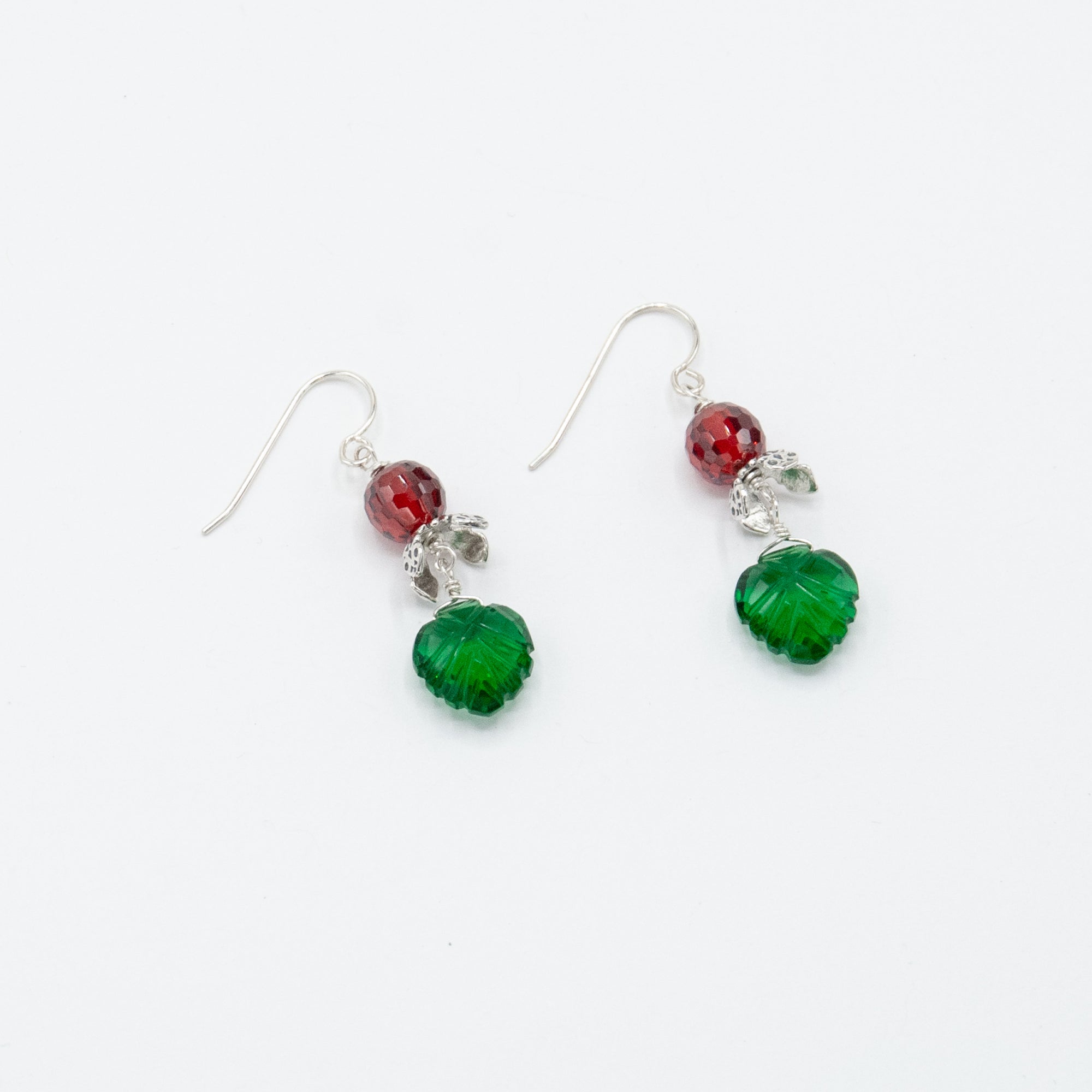 Rose hip earrings with carved green hydro quartz and pomegranate cubic zirconia on sterling silver