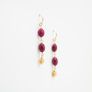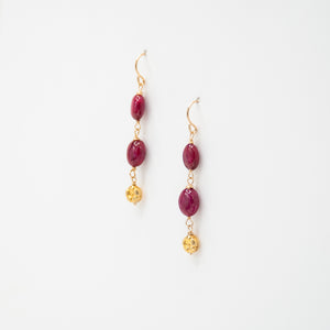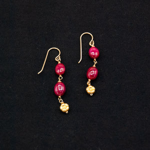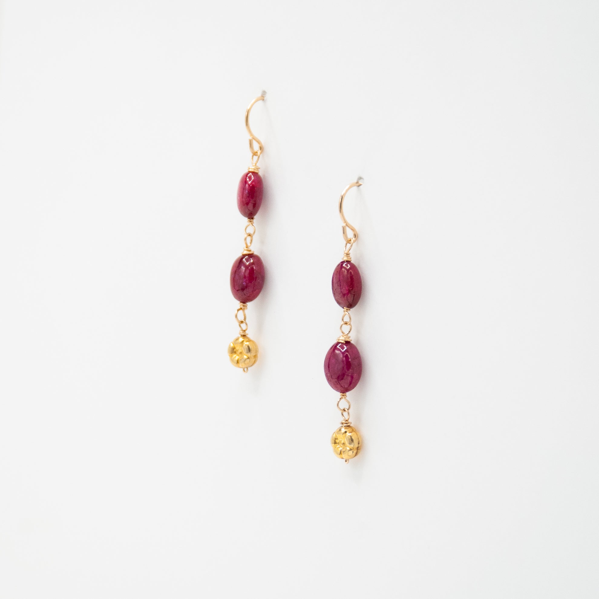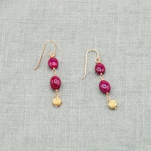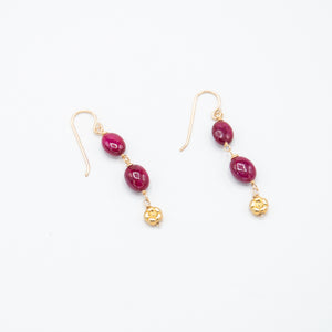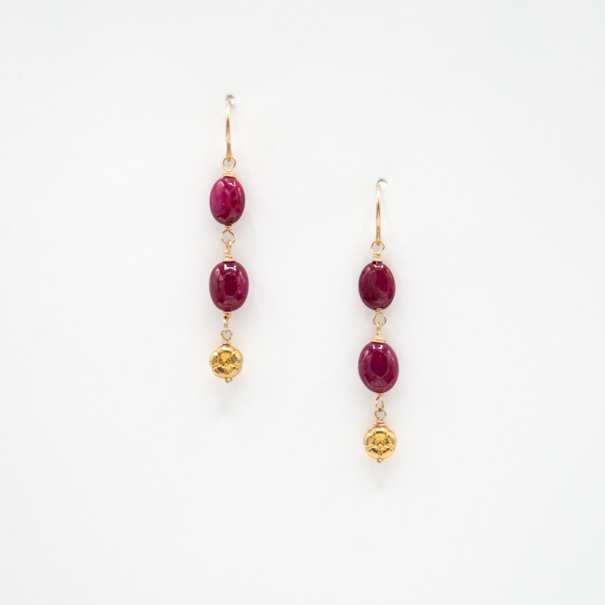 Double drop polished rubies with gold vermeil flowers. Very nice quality