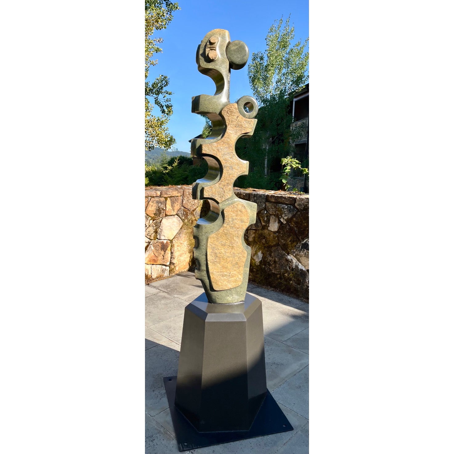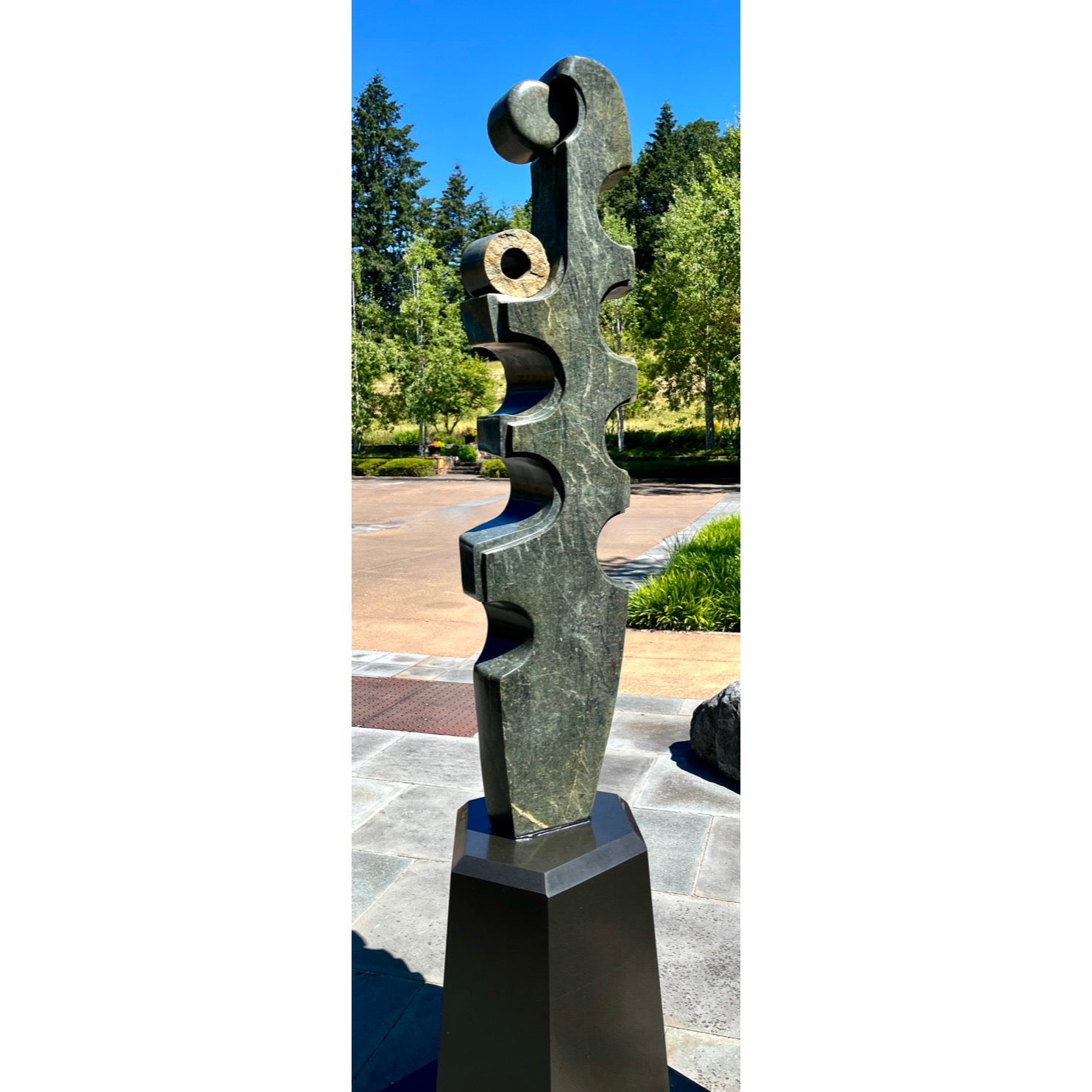 Green Goddess is carved from NW Olivine which is found near Mt. Baker Washington and represents many legends that come from the Ocean, one being Mermaids. Olivine contains semi precious peridot crystals that are sometimes a deep emerald green.