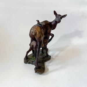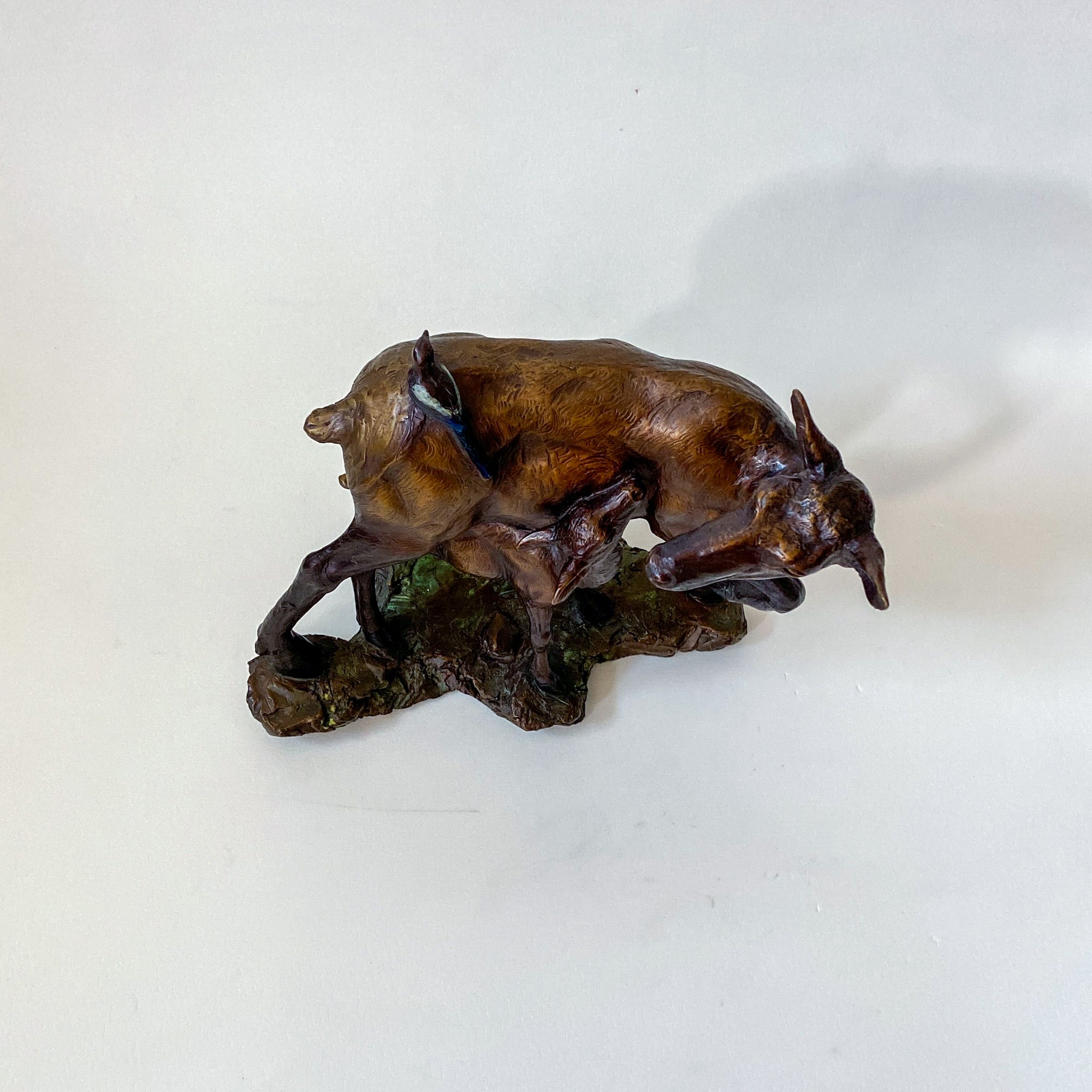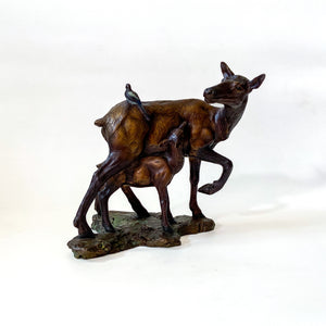 An elk calf relies on its watchful mother for guidance, just as artists allow a power greater than themselves to provide inspiration. This piece portrays a tender moment between the elk cow and her calf. Even the magpie seems content to simply rest and enjoy the quiet moment along with them.